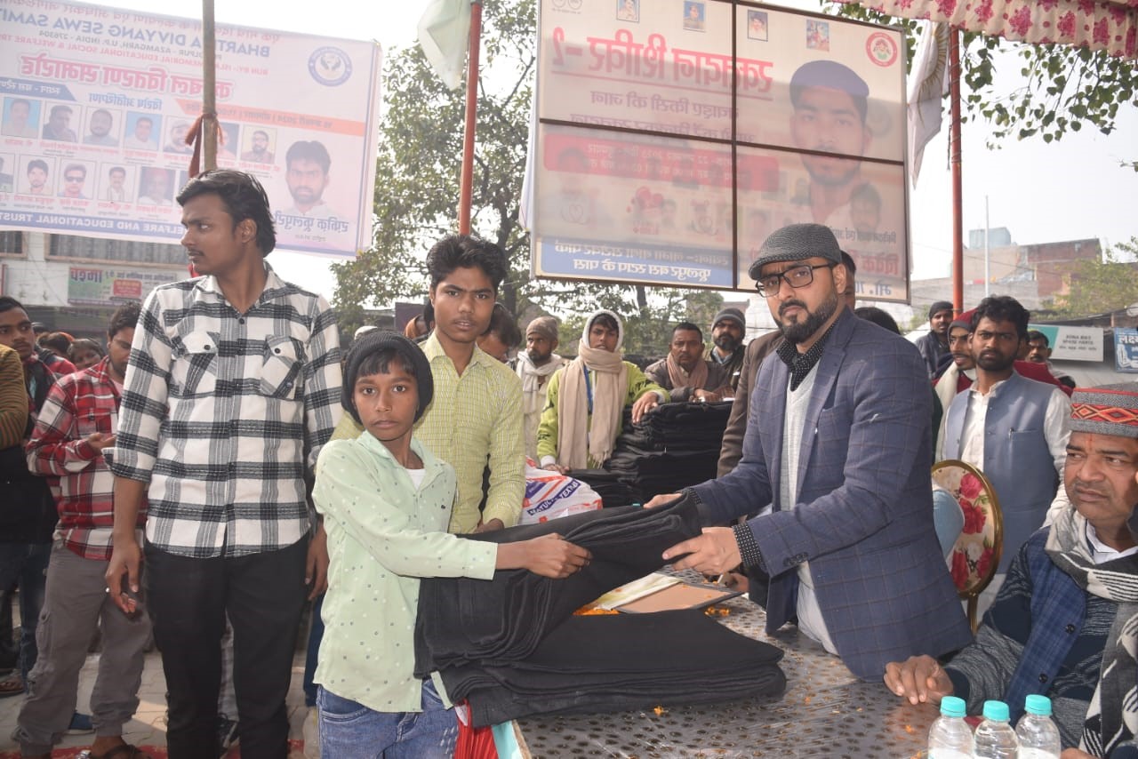 On January 15, 2024, Azam Welfare and Educational Trust, in collaboration with Bhartiya Divyang Sewa Samiti, organized a heartwarming event called 'Kambal Vitran Samaroh' (Blanket Distribution) at Phoolpur Roadways. The event aimed to provide blankets to handicapped and economically disadvantaged individuals in need. Under the supervision of Rafeeque Phoolpuri, President of Bhartiya Divyang Sewa Samiti, and Mr. Saad Azam, the Founder of Azam Welfare and Educational Trust, the event successfully brought warmth to those who needed it most. This initiative benefitted nearly 450 people, providing them with essential comfort during the harsh winter months.